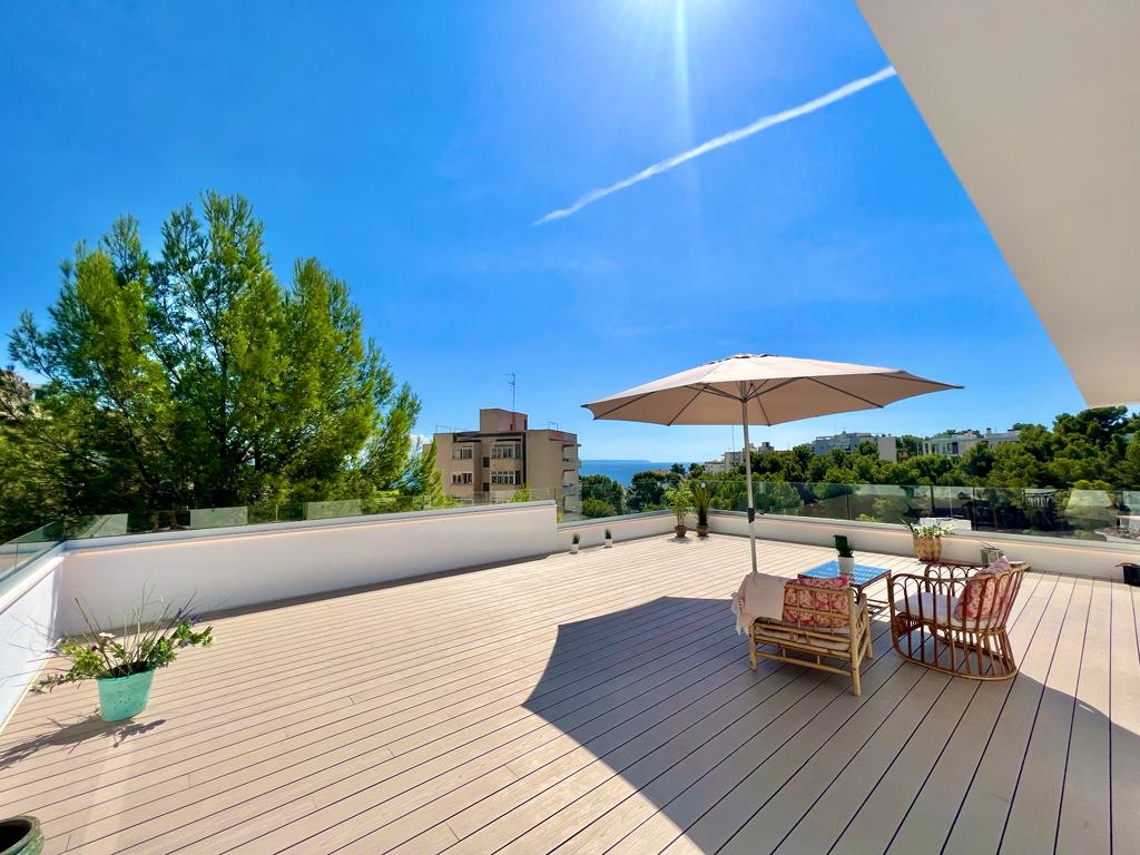 Lichtdurchflutetes Meerblick Penthouse Apartment mit maximalen Sonnenstunden auf der ungewöhnlichen 80 m2 großen Terrasse.