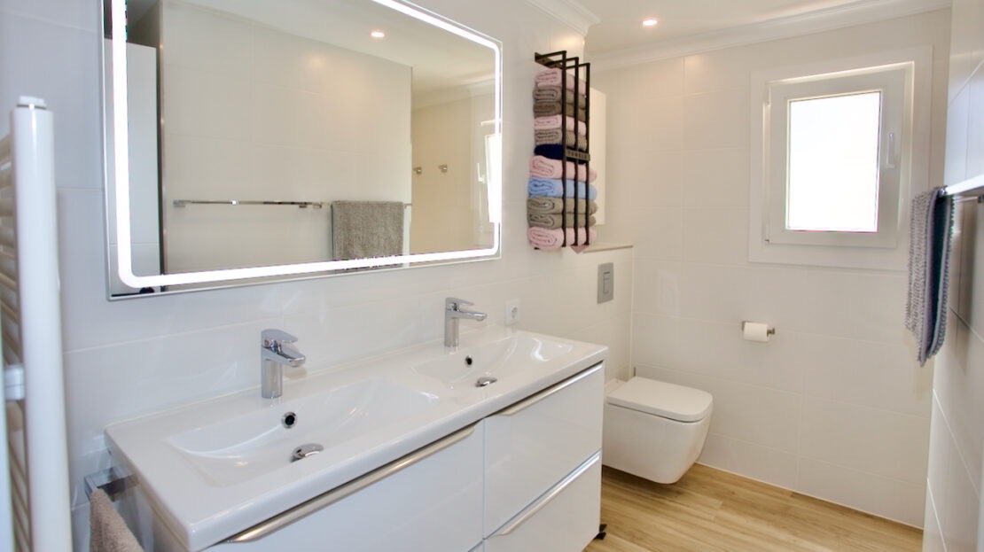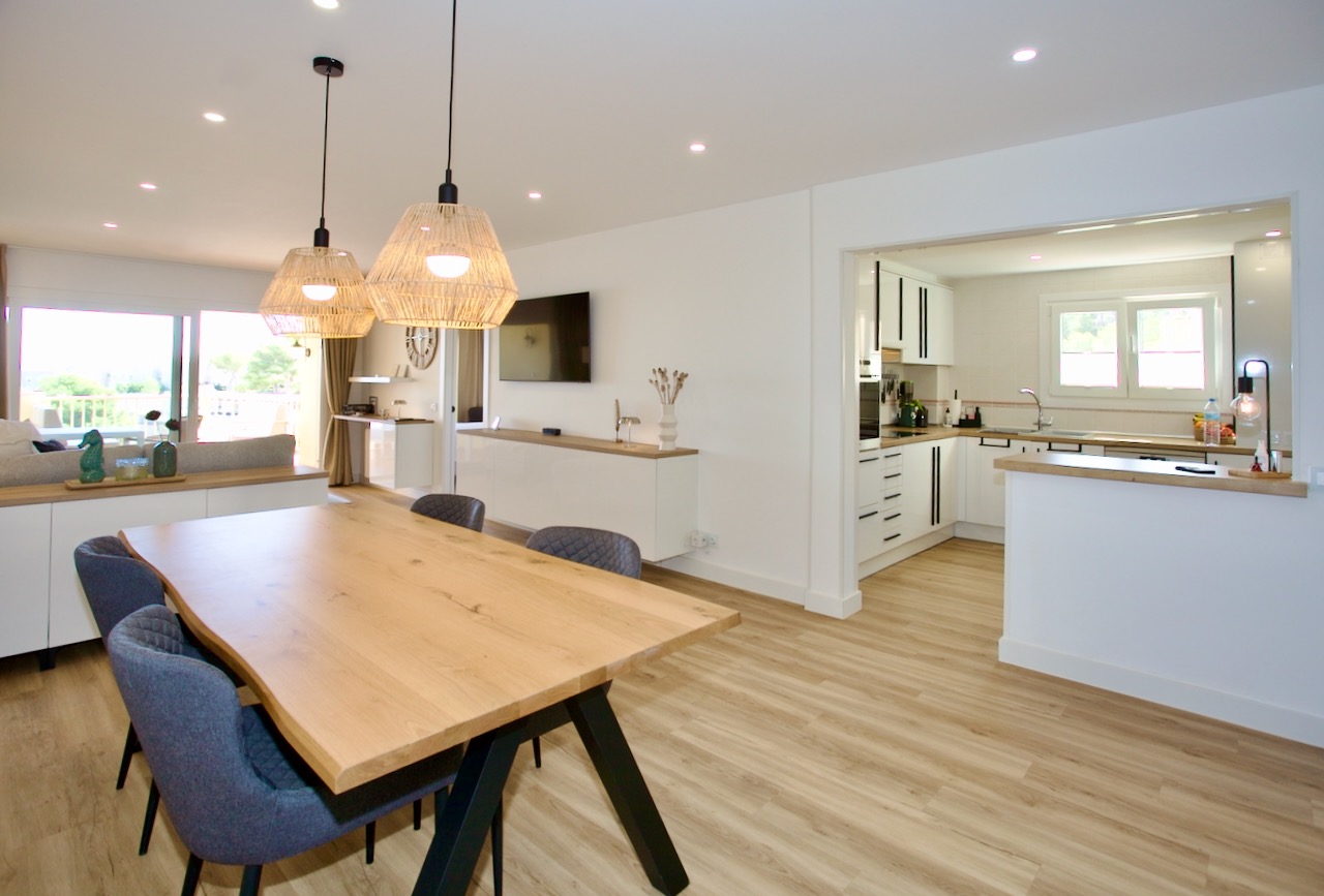 Die Immobilie verfügt über 156 m² Wohnfläche mit drei Schlafzimmern, zwei Badezimmern (eines davon en suite) und einem hellen, offenen Wohn- und Essbereich. Eine private Terrasse mit Panoramablick auf das Mittelmeer lädt zum Entspannen im Freien ein.