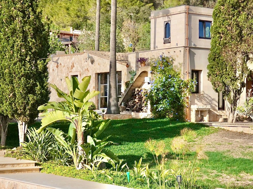 Obstbäume und ein Gemüsegarten umrahmen das absolute autarke Leben auf der Finca. Rasenfläche mit Oleander Begrenzung und altem Baumbestand sind ebenfalls vorhanden.