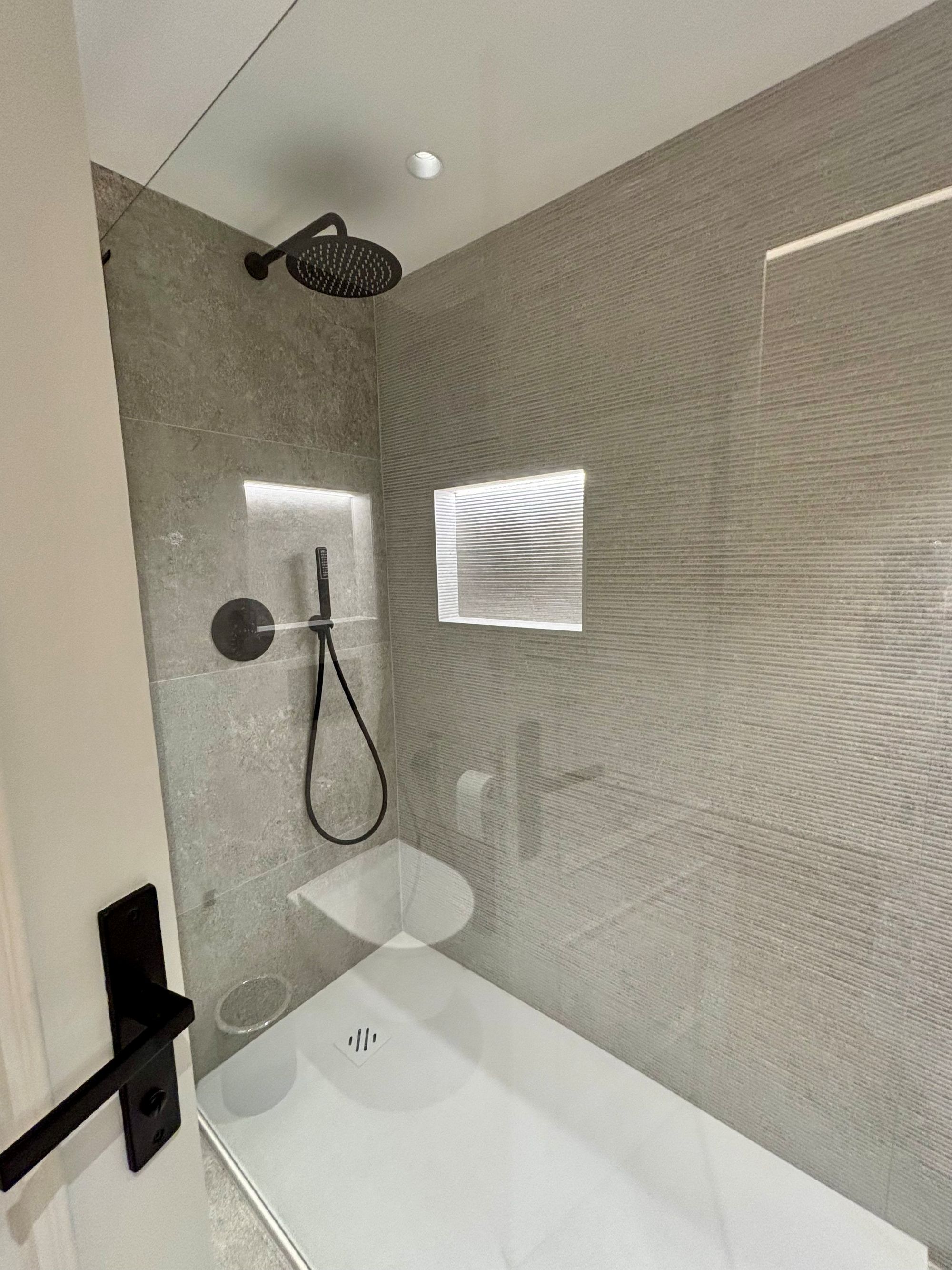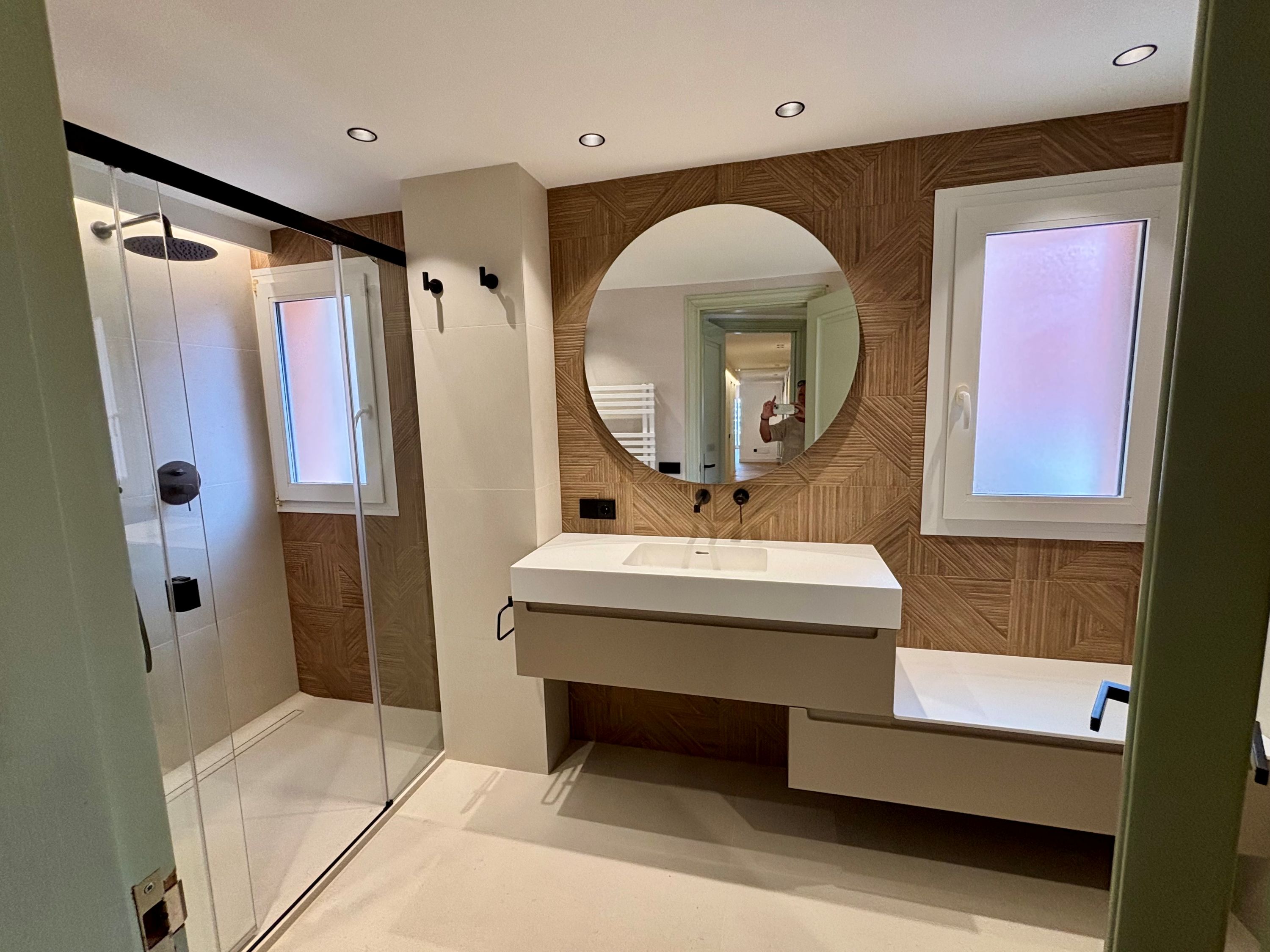 Komplett renovierte, mediterrane Wohnung mit viel Raffinesse, Komfort und Stil. Die Südausrichtung durchflutet jeden Raum mit Tageslicht und bietet einen Panoramablick auf das Meer, den Sie am besten von der beeindruckenden, 35 m² großen, verglasten Terrasse aus genießen können – ein eleganter Ort zum Entspannen und für gesellige Stunden.