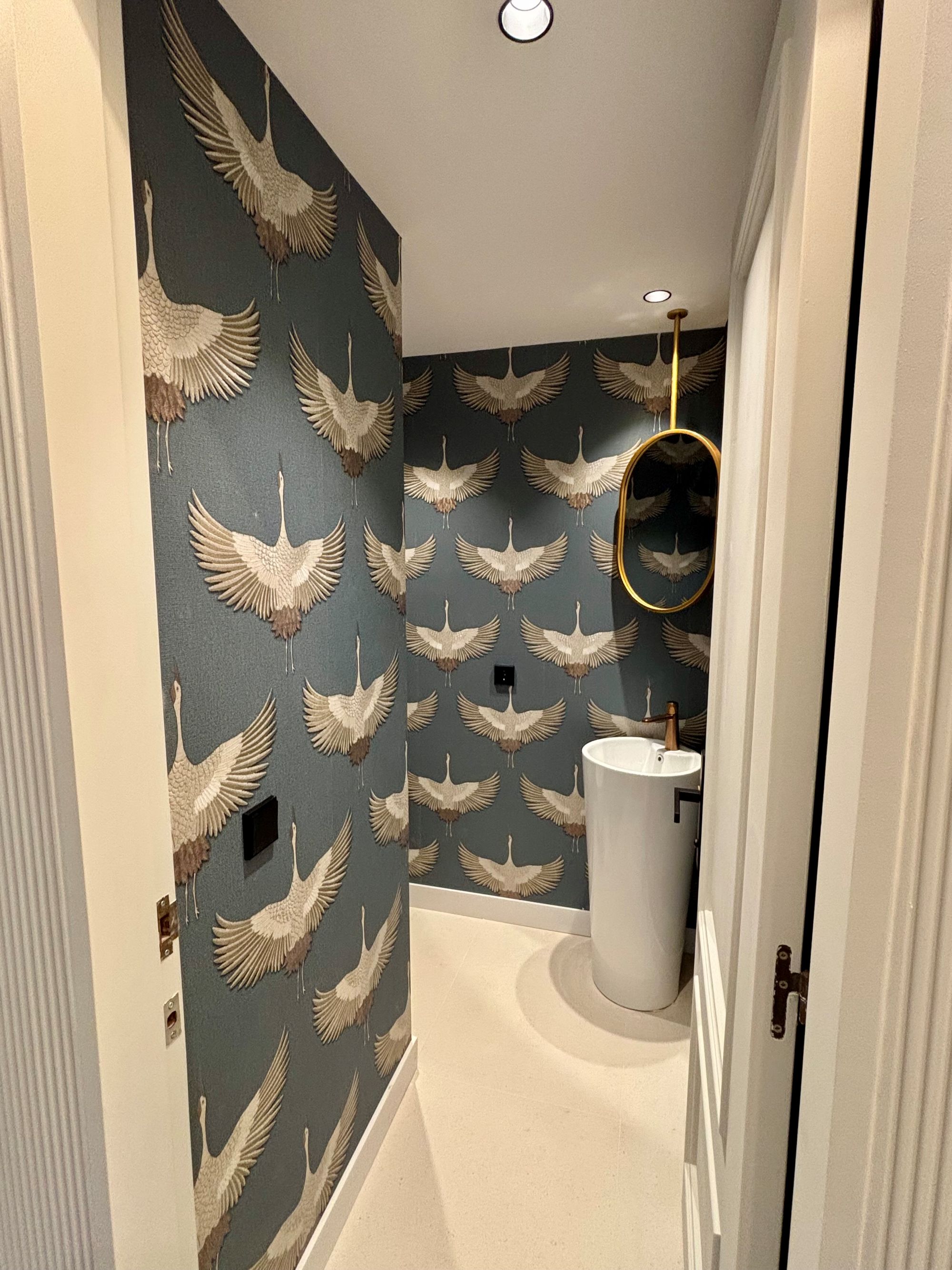 Der elegante Wohn- und Essbereich mit Kamin bildet das Herzstück der Wohnung. Die moderne, offene Küche ist mit hochwertigen Geräten, einer Osmoseanlage und einem Wasserenthärter ausgestattet. Ein praktischer Hauswirtschaftsraum mit Waschmaschine und Trockner rundet das Angebot ab. Die Wohnung bietet drei Schlafzimmer mit maßgefertigten Kleiderschränken, zwei Badezimmer (eines davon en suite) und ein Gäste-WC.