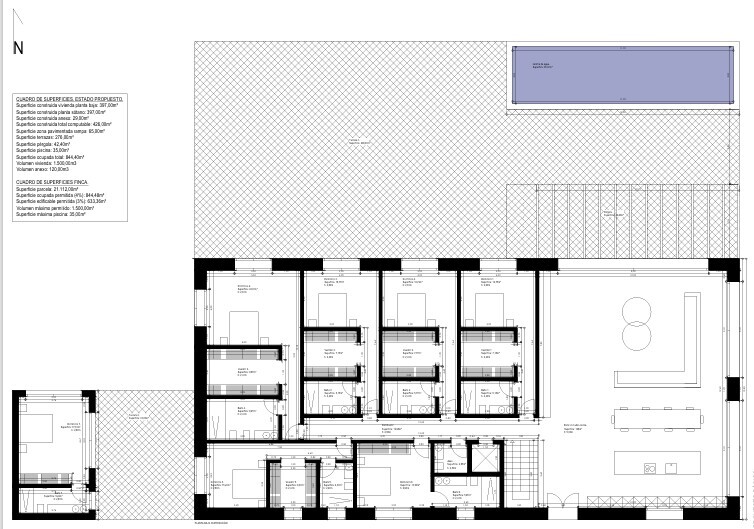 Die Grundstücksgrösse beträgt 21.112 m². Das Wohnhaus ist mit 844 m² Nutzfläche geplant.